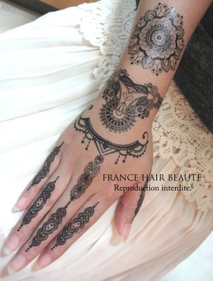 MAORI/TRIBAL. Dentelle Blanche-Noire-Mariage oriental Henne