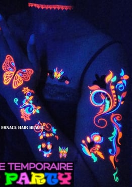 Tatouages temporaires fluo, maori, métallique, blanc, noir large choix.
