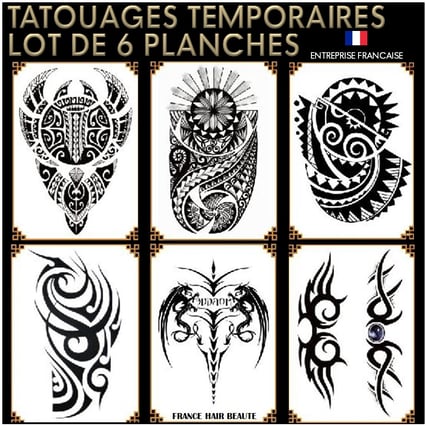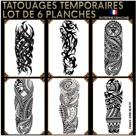 TATOUAGES TEMPORAIRES EPHEMERES MAORI, FLUO, DORE, BLANC, NOIR...